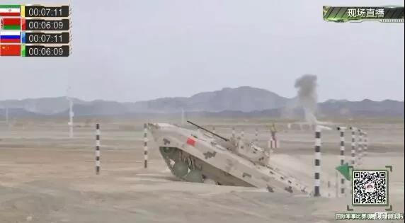 第一圈,使用15發(fā)30毫米穿甲曳光彈短停對3個步戰(zhàn)車目標側(cè)向射擊