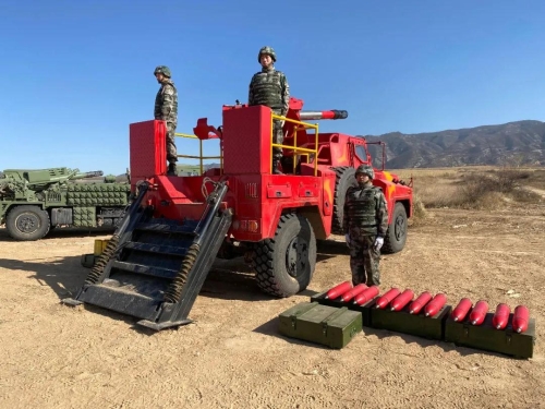 一機集團山西北方機械公司4X4車載119mm遠程滅火炮主要針對森林、山地火災等一般人員與裝備難以抵達的特殊火場,使用車載的119mm滅火炮,發射滅火彈進行遠程滅火。該裝備采用的機動平臺是4X4高機動越野車,能夠快速抵達火場附近,且能夠為火炮提供穩定的射擊平臺。