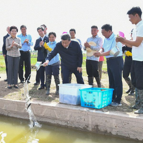 習(xí)近平總書記9日在銀川考察調(diào)研。他先后來到賀蘭縣稻漁空間鄉(xiāng)村生態(tài)觀光園、賀蘭山東麓葡萄種植園,了解當(dāng)?shù)匕l(fā)展特色農(nóng)業(yè)產(chǎn)業(yè)、加強(qiáng)賀蘭山生態(tài)保護(hù)等情況。 (攝影:新華社記者 鞠鵬、謝環(huán)馳、王曄、燕雁) |