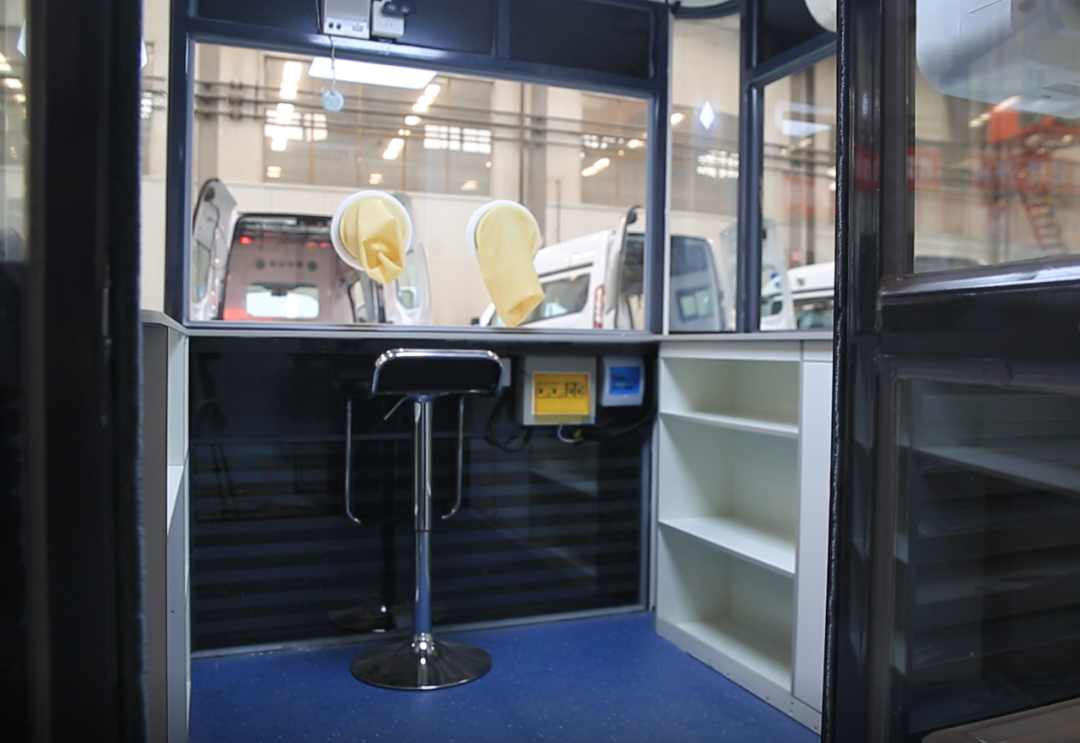核酸采樣工作站長、寬各2.3米,高2.7米,下部由鋁合金等復合材料搭建,上部四圍鑲嵌厚厚的透明玻璃,像一個小型的全封閉流動崗亭。整個工作站包括艙體、正壓新風系統、消毒系統、空調、對講系統、采樣系統、登記系統、低溫轉運箱、儲物柜、滅火器等,可實現一側登記、一側采樣,醫護人員和受采者完全隔離,避免醫護人員感染,其舒適的工作環境同樣有利于提高采樣效率。