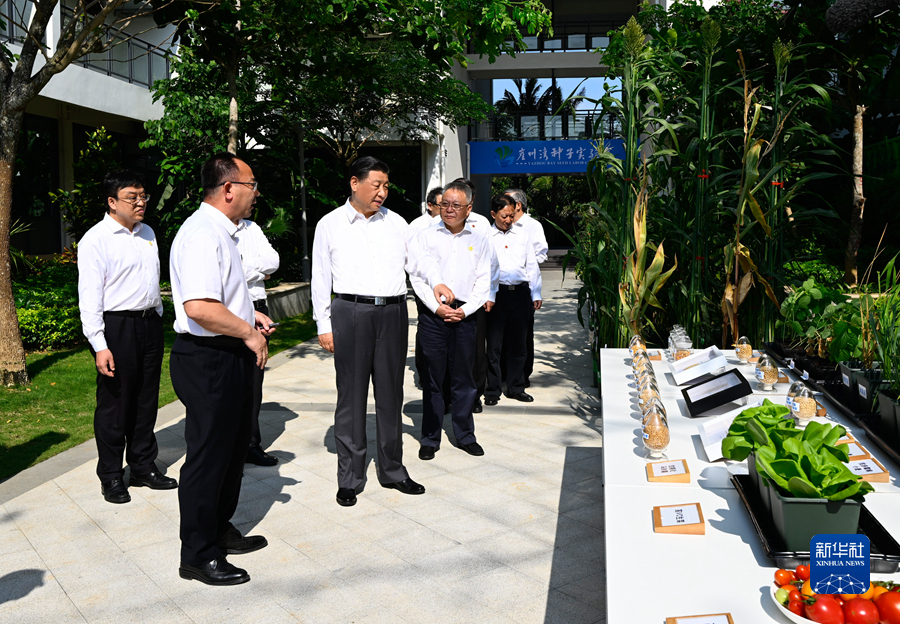 2022年4月10日至13日,中共中央總書記、國家主席、中央軍委主席習近平在海南考察。這是10日下午,習近平在位于三亞市崖州灣科技城的崖州灣種子實驗室考察。新華社記者 李學仁 攝