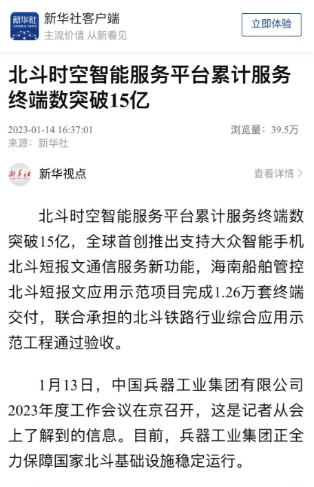 新華社:北斗時空智能服務平臺累計服務終端數突破15億