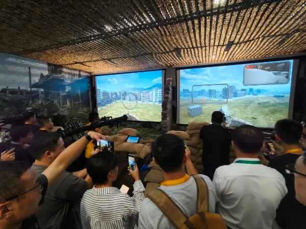 本屆航展,兵器工業集團著重展示數智賦能軍貿合成旅作戰體系。“探館”現場,新聞發言人向記者團介紹了本屆航展集團公司參展亮點、明星產品和技術發展成果,并對VT5-U輕型坦克、VU-T10無人平臺、SR5多管火箭炮、金雕CR500B無人直升機系統、指揮控制中心等參展裝備和技術作了重點介紹,媒體記者進一步了解了裝備的性能和特點。在無人火力展區,記者團還走進仿真訓練體驗區,親身“使用”單兵武器,體驗裝備性能。