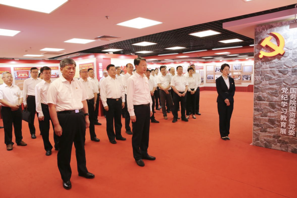 黨組同志認真聆聽講解,集體參觀了“政治鑄魂——習近平總書記重要論述”“紀法樹威——黨規黨紀相關要求”“傳承增信——黨的優良傳統”“嚴管促行——國務院國資委黨委紀律建設成效”“警示立戒——反面典型案例”“實干建功——工作展望”6個篇章,通過觀看圖文、視頻等形式多樣的展品展示,進一步學習領會習近平總書記關于國資央企的重要指示批示精神和黨的紀律建設的重要論述,學習把握《中國共產黨紀律處分條例》新增、修訂內容,全面了解國務院國資委黨委強化政治引領、加強政治監督、深化紀律建設、抓實巡視工作等方面的做法舉措,集中觀看近年來國資央企發生的具有代表性的違規違紀案例,深刻領悟以習近平同志為核心的黨中央堅持黨要管黨、全面從嚴治黨取得的歷史性成就,全面感受國務院國資委黨委全面從嚴治黨取得的重要成果。