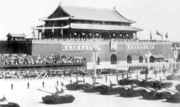 1959年10月1日,慶祝中華人民共和國成立十周年閱兵式現(xiàn)場(chǎng),32輛59式主戰(zhàn)坦克雄赳赳氣昂昂駛過天安門廣場(chǎng),向全世界宣告,中國結(jié)束了不能生產(chǎn)坦克的歷史。